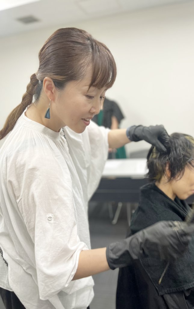 コモンヘアデザインの朝子さんにヘナの塗り方のコツなどを伝えてもらいながら、モデルさんに塗っていただきました✨