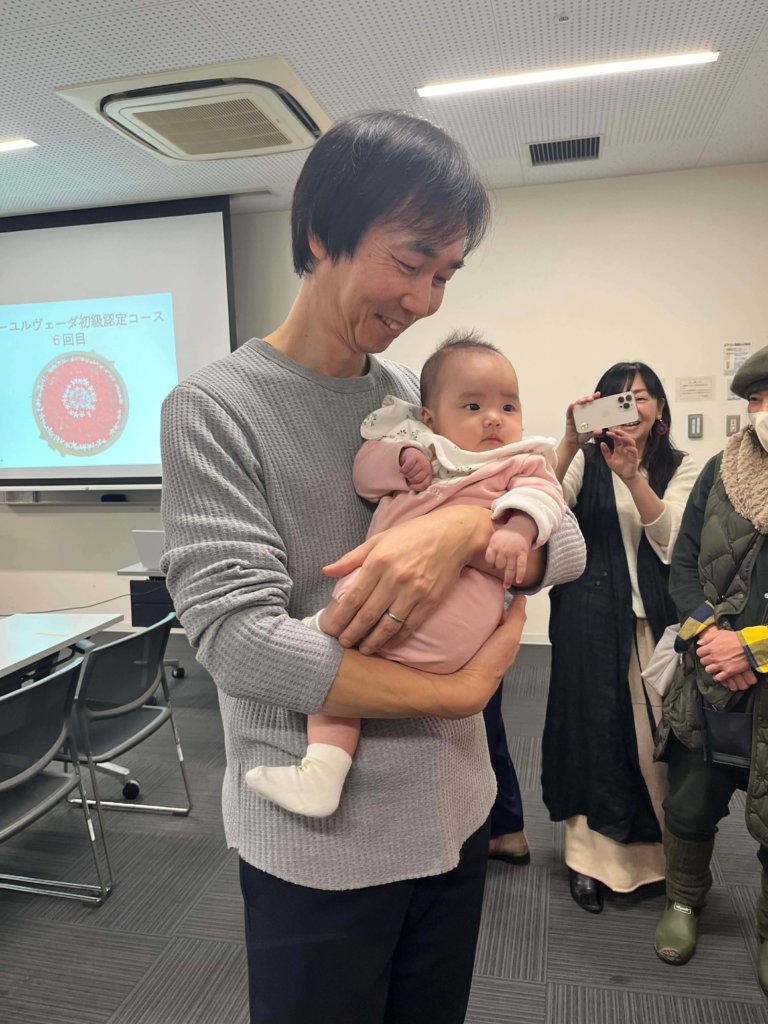 受講生の赤ちゃん、みんなのアイドル、アーユルベイビーちゃんを囲んで♡