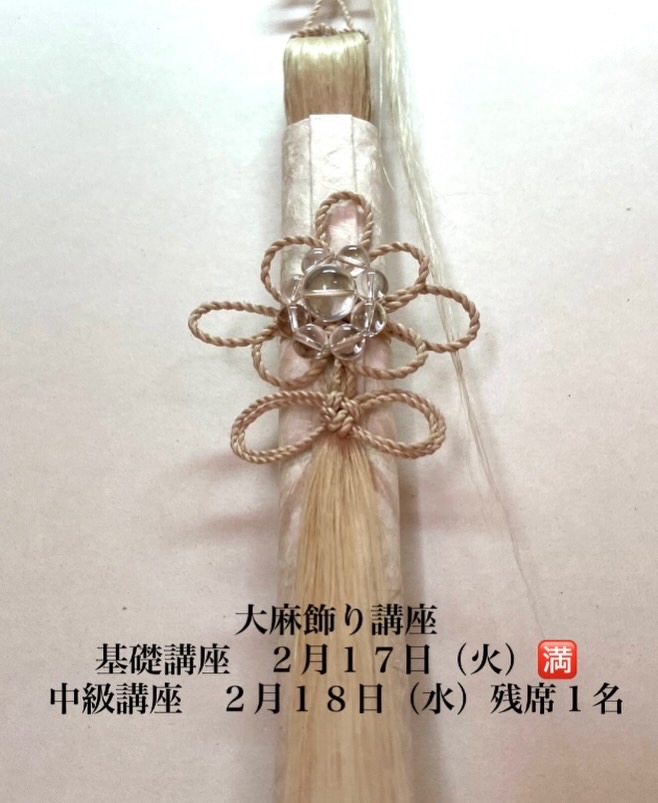 おかげさまで、大麻飾り基礎講座満席🈵、中級講座残席1名様となりました✨