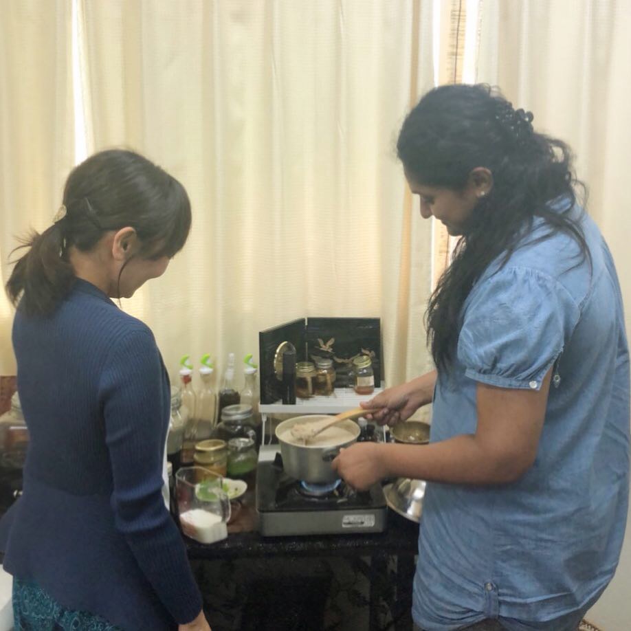 お米やウラド豆やブレンドしたハーブパウダー等を使って作ります。